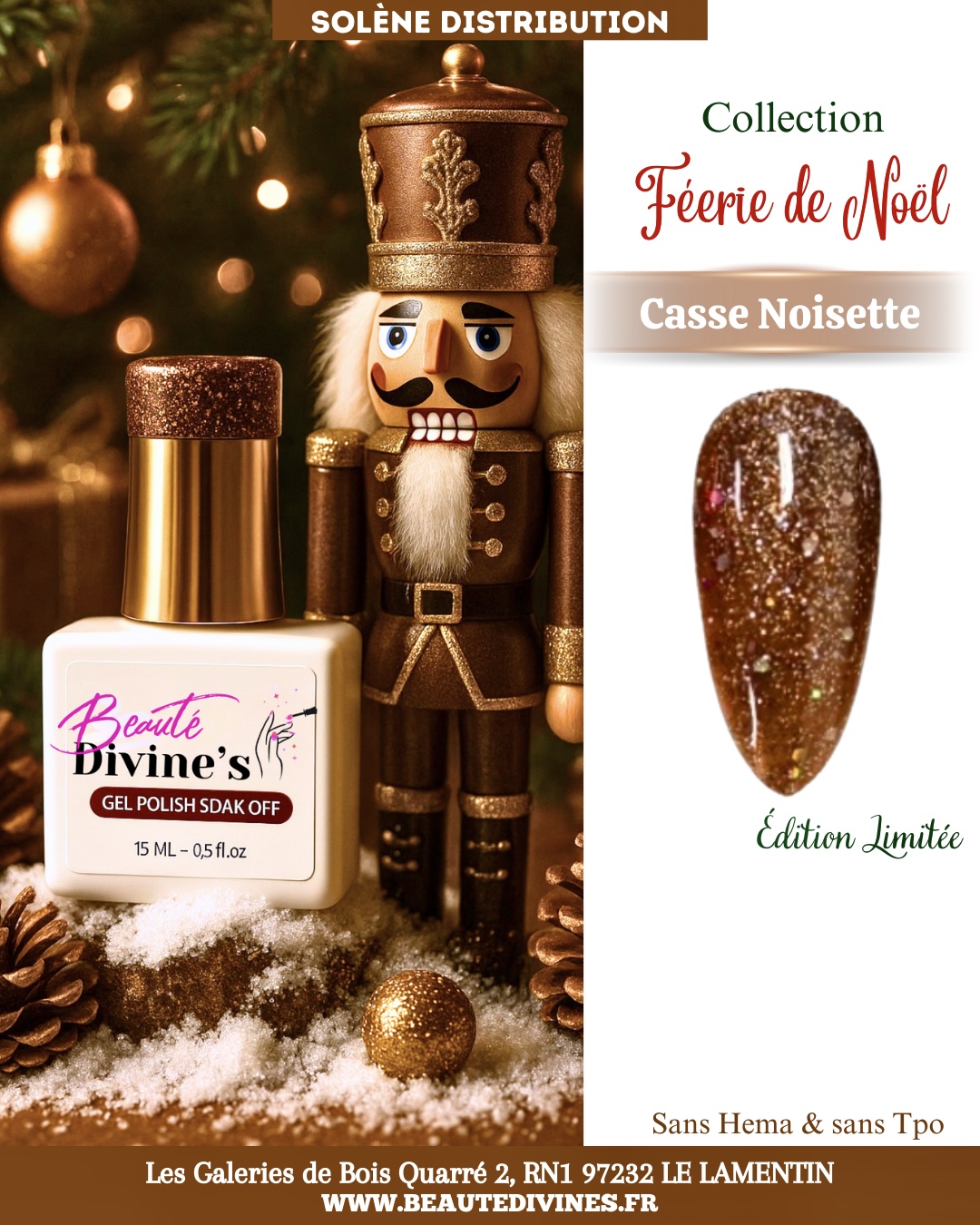 Plongez dans la magie des fêtes avec notre Collection Féerie de Noël, une série exclusive de vernis semi-permanents aux nuances festives, intenses et irrésistiblement glamour.